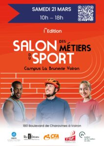 Porté par le CFA Sport et Animation Rhône-Alpes, en collaboration avec les établissements de formation du Campus la Brunerie à Voiron (CREPS Rhône-Alpes, Campus Tremplin Sport et l’@Institut de Formation du Vélo – IFV) et le Pays Voironnais – Officiel, le Salon des Métiers du Sport a vocation à devenir un rendez-vous incontournable pour toutes celles et ceux qui s’intéressent aux métiers, formations et opportunités professionnelles dans le secteur du sport.