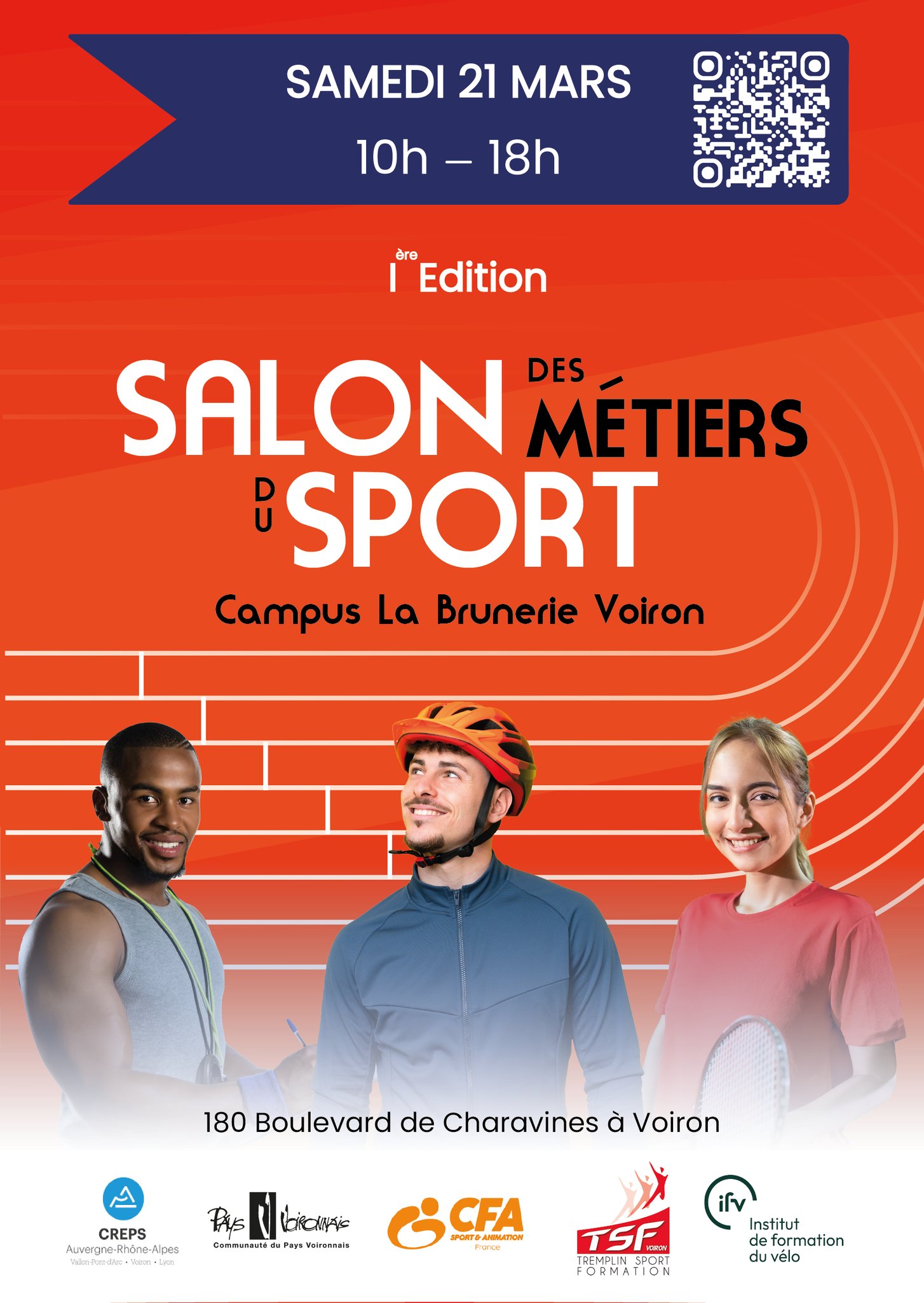Porté par le CFA Sport et Animation Rhône-Alpes, en collaboration avec les établissements de formation du Campus la Brunerie à Voiron (CREPS Rhône-Alpes, Campus Tremplin Sport et l’@Institut de Formation du Vélo – IFV) et le Pays Voironnais – Officiel, le Salon des Métiers du Sport a vocation à devenir un rendez-vous incontournable pour toutes celles et ceux qui s’intéressent aux métiers, formations et opportunités professionnelles dans le secteur du sport.